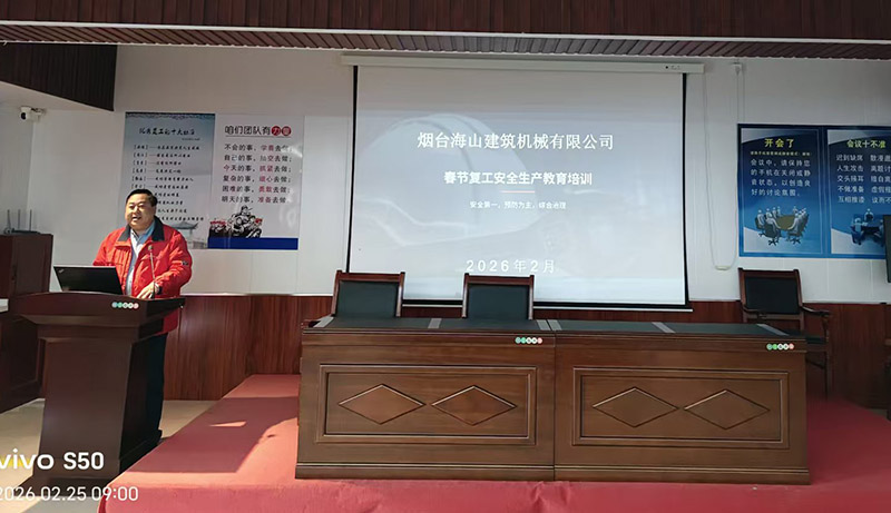 2026年2月25日上午,煙臺海山建筑機(jī)械有限公司在會議室組織召開春節(jié)復(fù)工復(fù)產(chǎn)安全生產(chǎn)教育培訓(xùn)會,會議由總經(jīng)理劉總主持,分管安全工作的張部長主講,公司全體員工參加培訓(xùn),切實(shí)上好“開工第一課”,把好“安全第一關(guān)”。